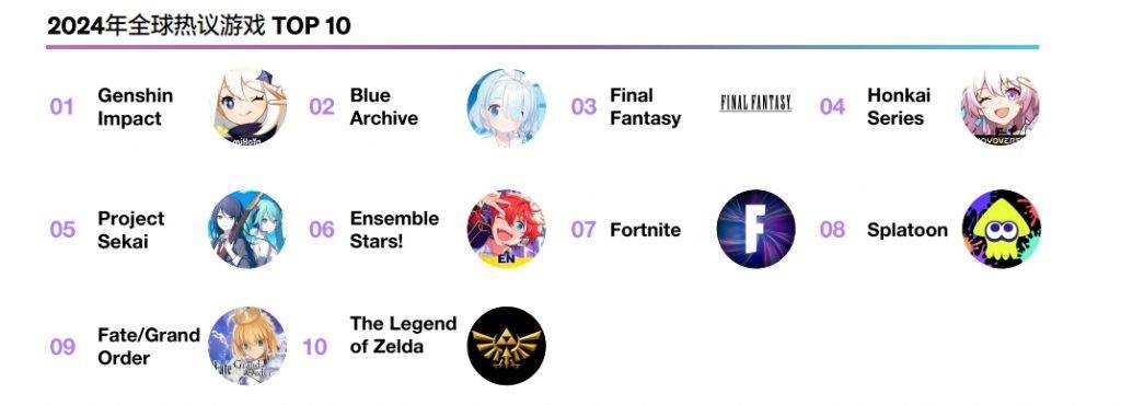 作为国家文化出口重点项目的《原神》,上线第二年便斩获有“游戏界奥斯卡”之称的The Game Awards最佳移动游戏奖项,是首个获此荣誉的国产原创IP游戏。2024年,因《原神》连续三年的显著商业成就及行业影响力,索尼PlayStation合作伙伴奖将最重磅的“卓越奖”颁发给了《原神》。此外,在海外最大社交平台之一X(Twitter)每年发布的全球热议游戏榜单中,《原神》已多次登顶。《原神》海外交响音乐会已在美国、英国、德国、新加坡等地举办共计24场,每场均座无虚席,入选2024年度上海市“中华文化国际传播”项目。