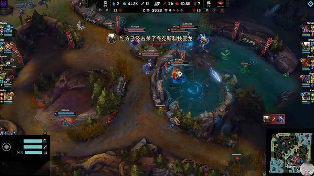 前期全线崩,打野没有任何机会去控小龙资源,双C通过团战取得的优势太大,导致IG的下路基本处于断线状态。优势局上中野严防死守下,IG唯一完成的几次击杀全都打在了AL的厄塔汗复活甲上。速龙魂,让IG早早没有了翻盘希望。