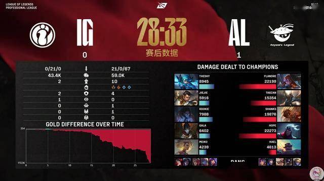 AL推到基地再杀一次辅助,最终定格在21-0,这是擅长打架的IG最憋屈的一场比赛,因为这局他们几乎没有任何还手之力。完全是在被AL单方面当成人机在虐。