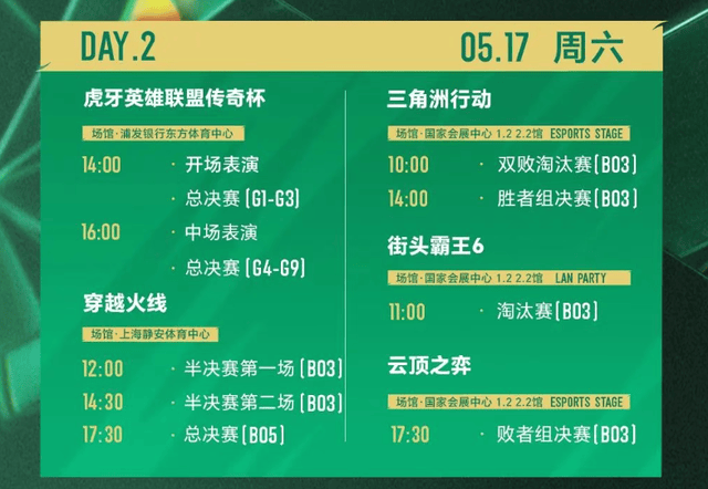 总决赛最后一天在5月18日拉开帷幕,王者荣耀、无畏契约、云顶之弈、街霸6与三角洲行动五个比赛项目将在一天的时间里打完所有比赛,相信能够让观众看个过瘾。而想要前往线下观赛的小伙伴,也可以通过每天的赛程安排按需购买此次ACL总决赛的门票。