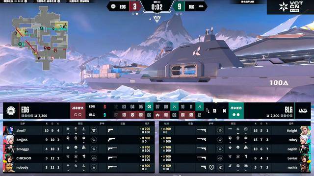 下半场康康用正义四杀赢下手枪局,BLG奖励局扳回一分。第17回合EDG依靠着枪械优势,直通A点拿下。第18回合whzy起到冥驹前压失误被打掉,但好在BLG回防赢下,小K双杀助队赢下。第19回合whzy捷风开大飓刃在B大四杀拿下赛点,第21回合EDG提速进攻A点下包,BLG回防互仍奇乐大招,EDG主导干拉被BLG打掉,BLG 13-8赢下森寒冬港。