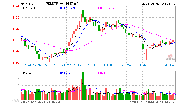5月6日,游戏ETF(159869)开盘涨0.64%,报1.100元。游戏ETF(159869)重仓股方面,光线传媒开盘涨0.26%,昆仑万维涨1.19%,恺英网络涨1.41%,神州泰岳涨1.74%,三七互娱涨1.05%,巨人网络涨1.03%,完美世界涨0.15%,掌趣科技涨0.83%,浙数文化涨1.28%,顺网科技涨0.70%。