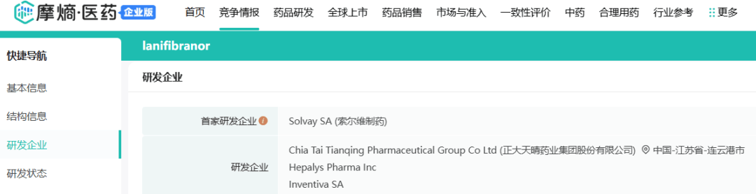 摩熵医药数据显示,Inventiva此次“孤注一掷”的Lanifibranor项目最早也是由Solvay研发。