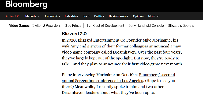 彭博社在2024年发布的文章称Dreamhaven为“暴雪2.0”