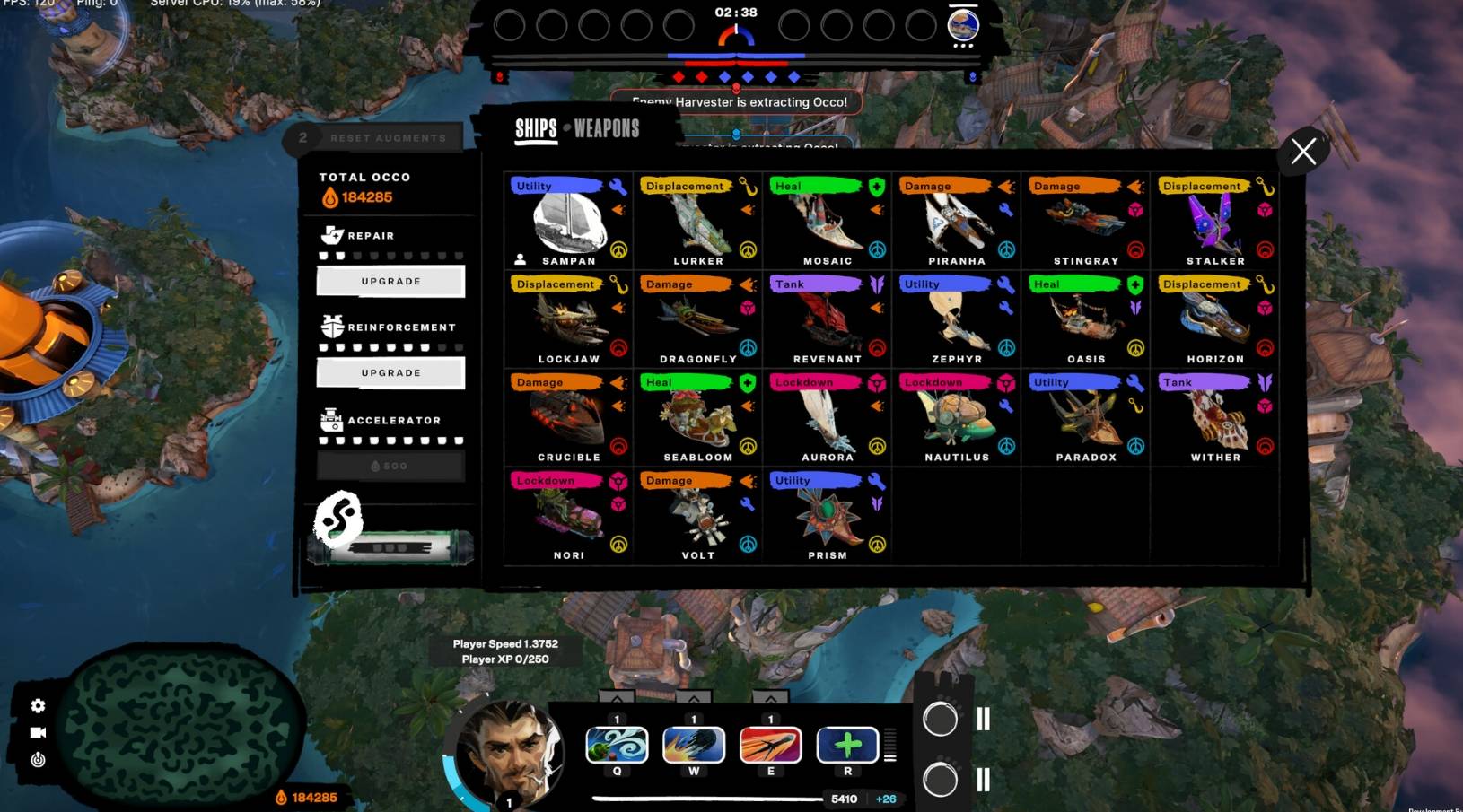 游戏的武器繁多,并非只是简单地将对手炸飞。例如超频器每次开火会加速技能CD,而战壕制造器则会发射出一个钩子,有点类似Dota屠夫或英雄联盟的蒸汽机器人。数十艘拥有各自主动技能和被动加成的舰船和舰长,为初入游戏的MOBA玩家提供更丰富的选择。