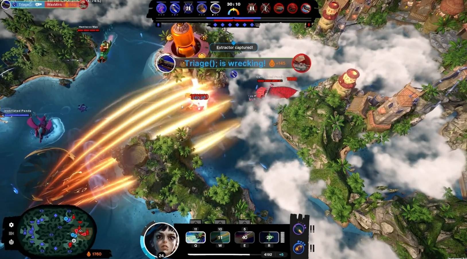值得一提是,游戏主打自动攻击并放弃补刀,目的是让玩家更快进入团战。从玩法来看,游戏更像一些早期Moba游戏,以推塔和Gank为中心,主打混乱的团战,角色定位和队伍结构也更松散。