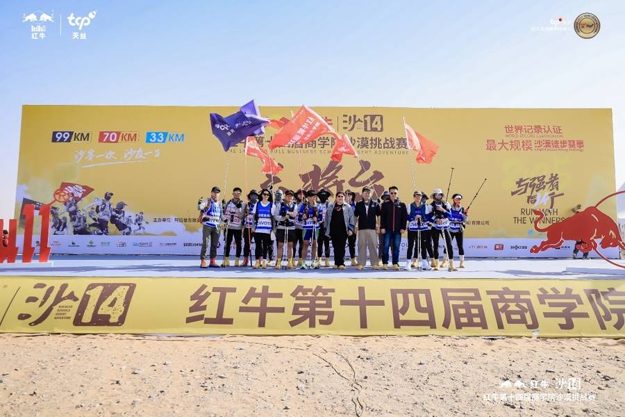 近日,红牛第十四届商学院沙漠挑战赛在阿拉善盟腾格里沙漠圆满收官。本次赛事汇聚110余支商学院队伍、超4000名精英选手,他们在三天赛程里,徒步穿越既定公里数的沙漠路线,挑战自我极限,生动诠释红牛 “挑战自我,突破极限” 的品牌精神。天丝集团作为红牛品牌所有者及赛事首席战略合作伙伴,全程提供高品质能量支持,激发选手斗志。