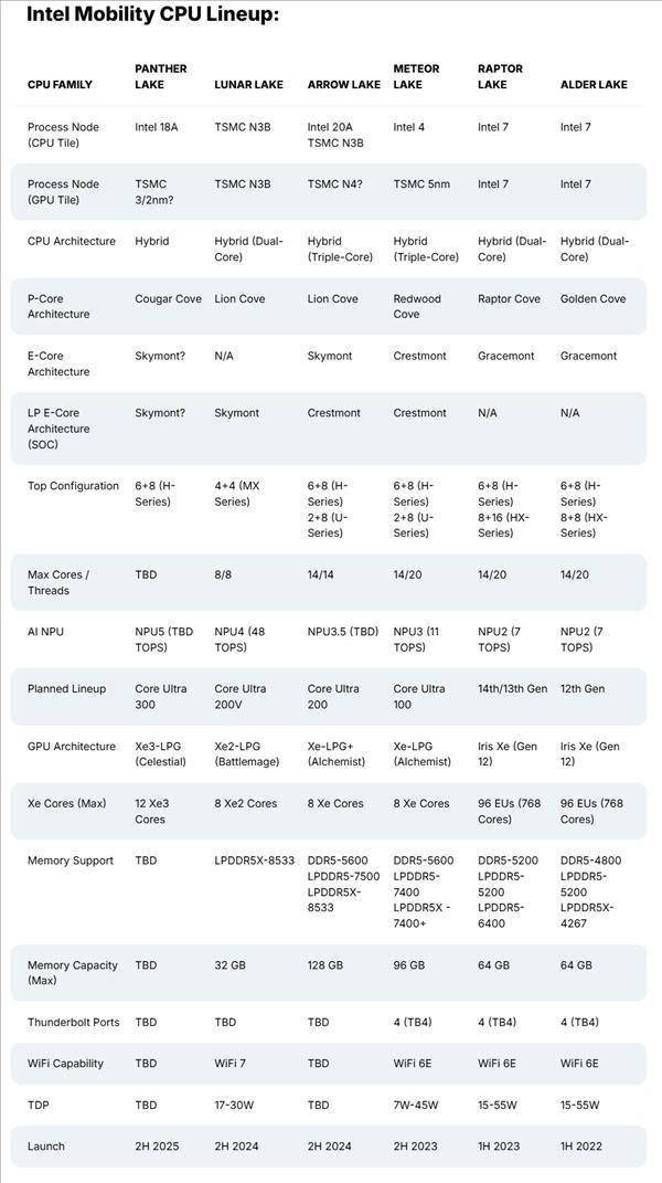 今年2月份,时任Intel联合CEO Michelle Johnston Holthaus就曾表示,Intel的下一代面向移动端笔记本的Panther Lake将于2025年下半年发布(预计命名为酷睿Ultra 300V系列)。新品将在同一时间范围内进入量产,并将于今年年底前上架。‘’