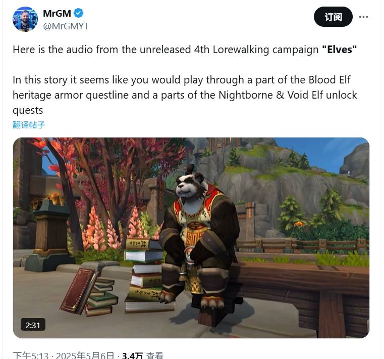 魔兽内容创作者MrGM在PTR上发现一段超过两分半钟的游学者周卓的对话(音频文件)。周卓是“游学探奇”的指引者,由吉姆·卡明斯配音。新的对话讲述了血精灵的大部分历史,从他们从卡利姆多流放开始,到奎尔萨拉斯的建立,到天灾军团的入侵,凯尔萨斯与基尔加丹的交易,太阳之井的修复等等。