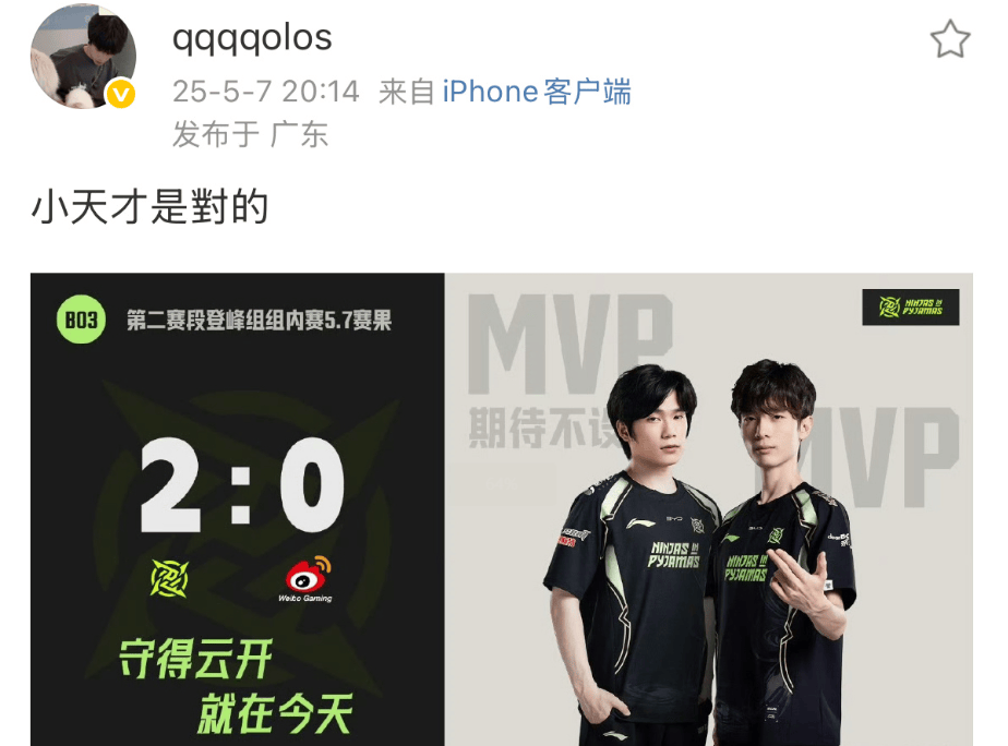比赛结束之后,NIP的上单也选择开团,直接整了一句“小天才是对的”更搞笑的是射手Leave评论并点赞回复“是对的”,看得出NIP的选手都很开心,甚至开始帮助Doinb进行有效输出。