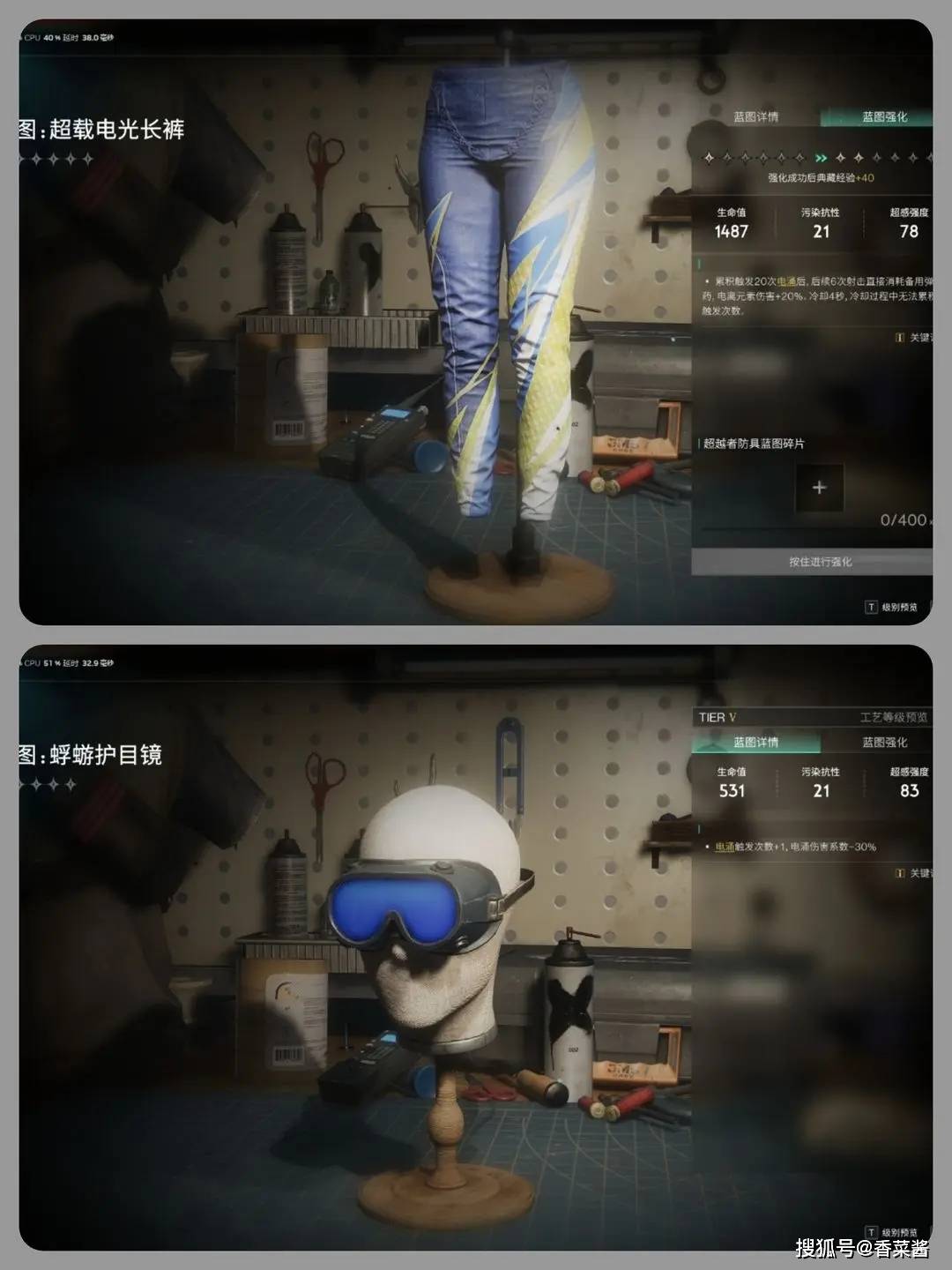 1、点弩流派的第一个分歧点在专精装,护目镜可电光裤哪个好一点,经过我自己实际测试,无论是日常使用还是单体灌伤,裤子都要优于护目镜,而且护目镜的超感要比裤子低,使用感受也舒服的多,综合来看我们选择电光裤。两者效果如图↓