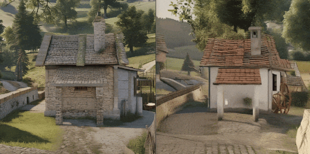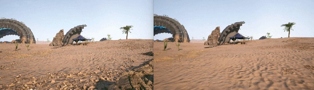 比如,在下面这个左右移动的场景中,草丛中的花有时会被树干遮挡,但随着脚步的进一步移动又会重现,这说明模型具有保持视觉一致性的能力。