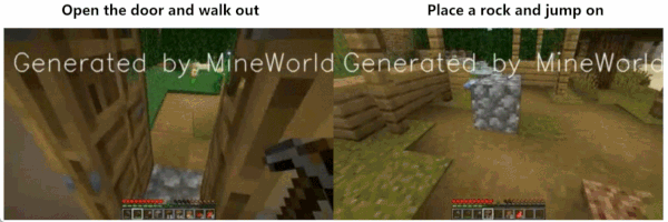 其实,除此之外,它还能向非 Minecraft 游戏环境泛化,生成城市、古建等开放式场景的互动视频。