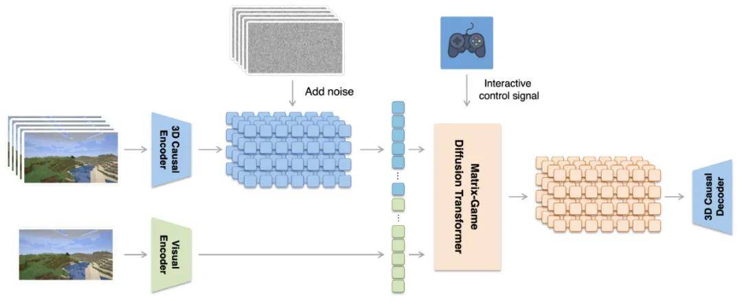 从模型架构上看,Matrix-Game 的整体架构围绕图像到世界建模(Image-to-World Modeling)的方式设计。正如 2 月份 Matrix-Zero 所展示的,该系列模型受空间智能启发,纯粹从原始图像中学习,可参考单张图像生成能交互的视频内容。它通过构建一个一致的场景来学习理解世界,不依赖语言提示,仅基于视觉信号对空间几何、物体的运动及物理交互进行建模。