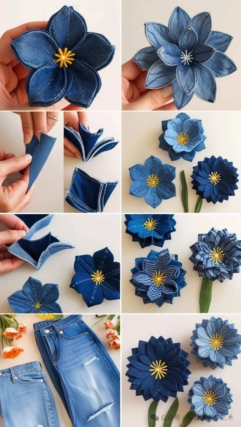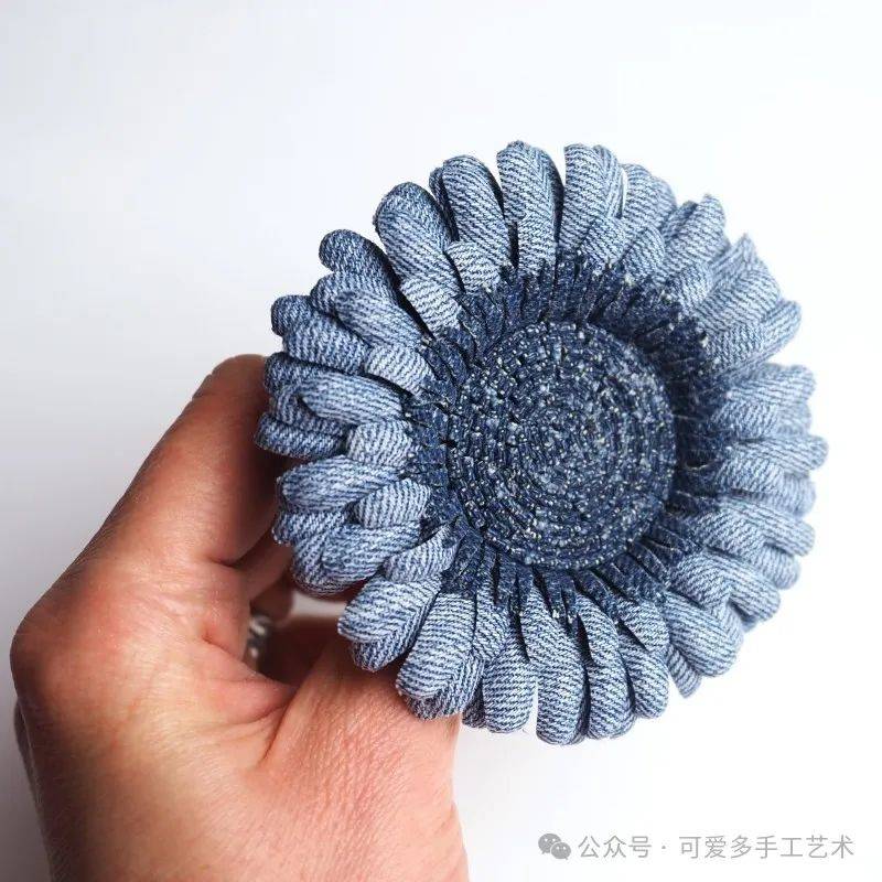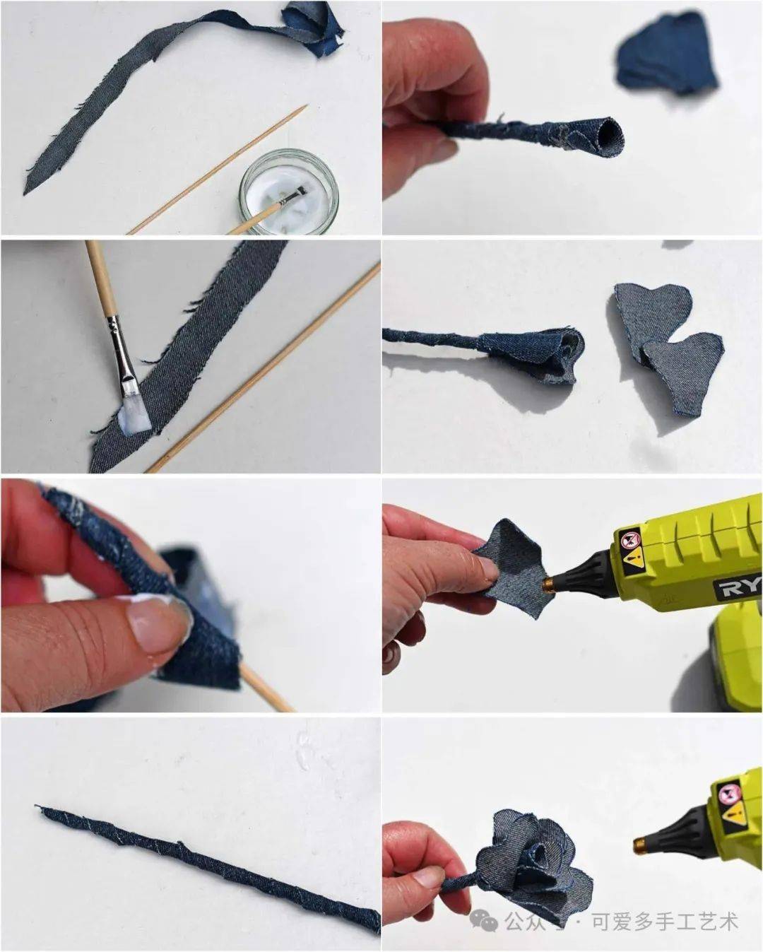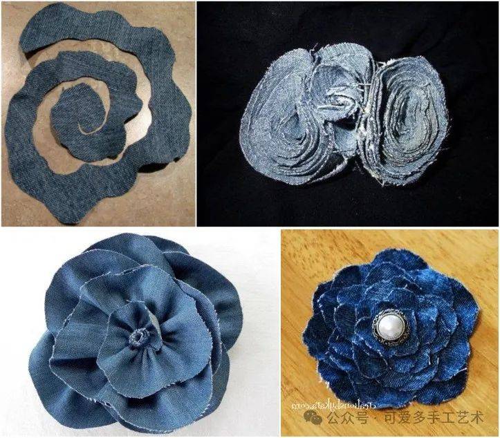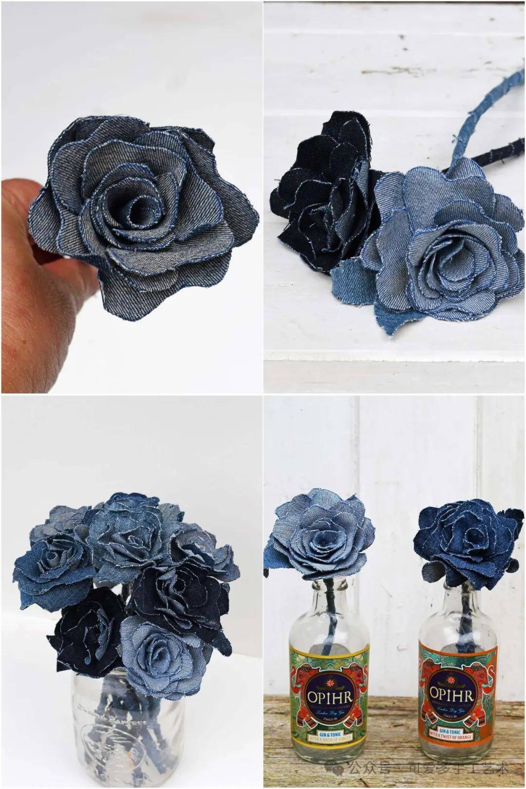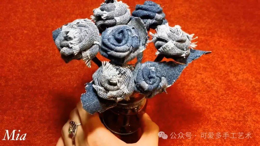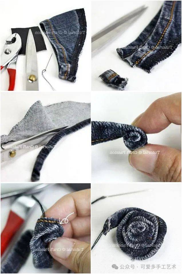 戳视频学习旧牛仔裤制作卷心玫瑰的教程