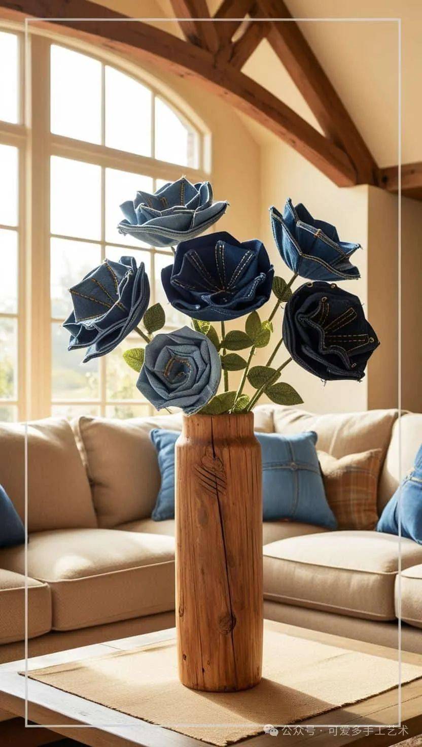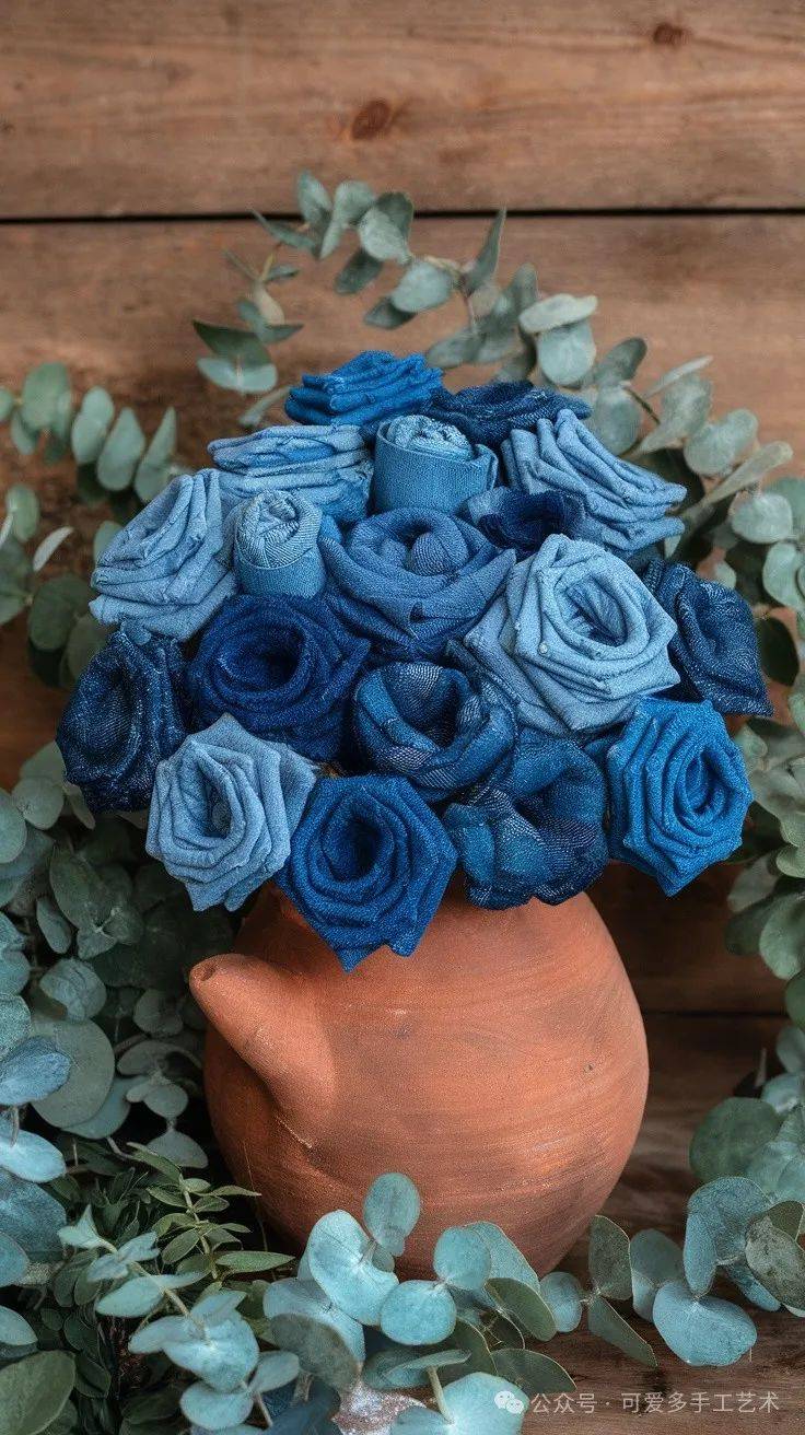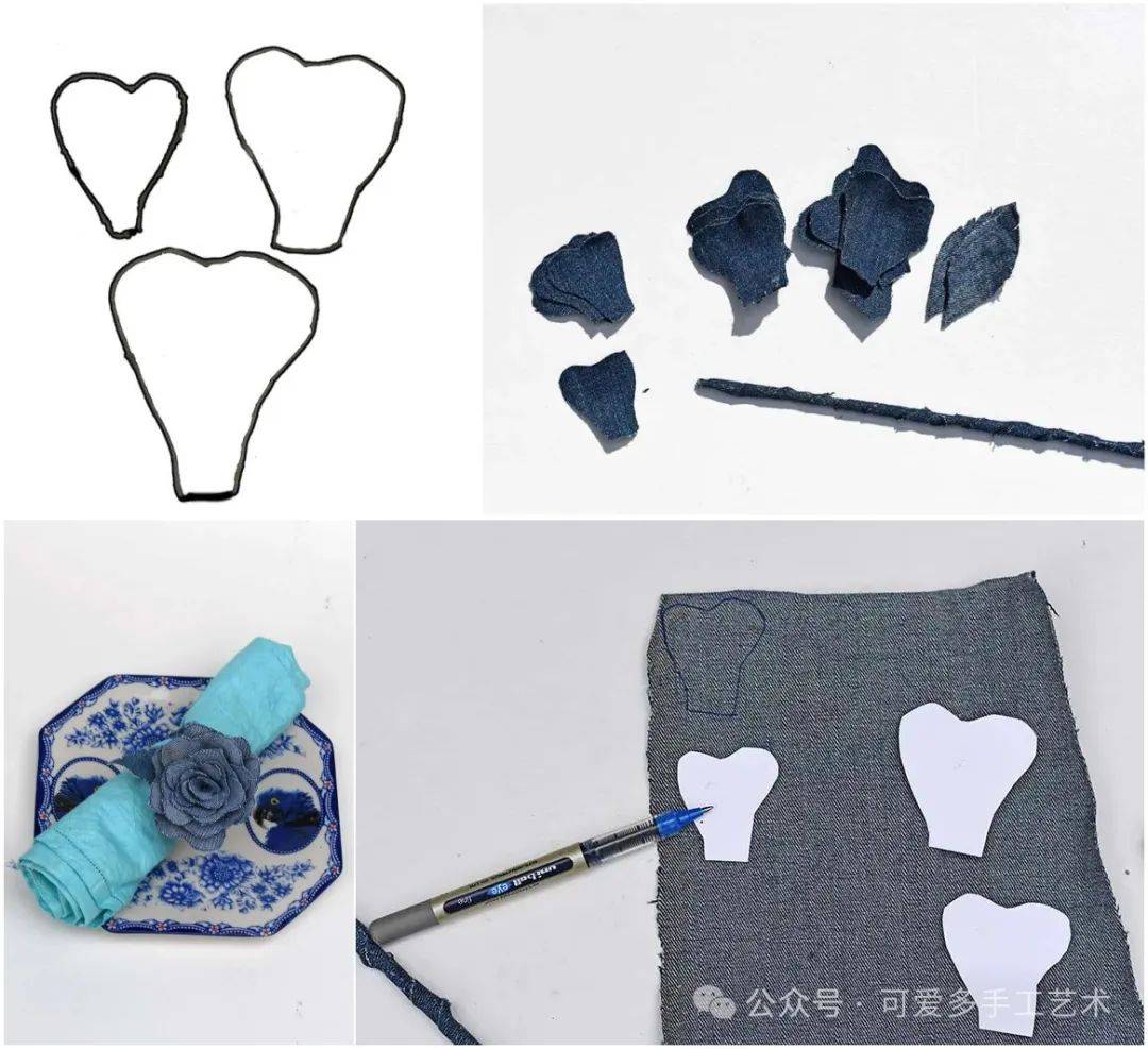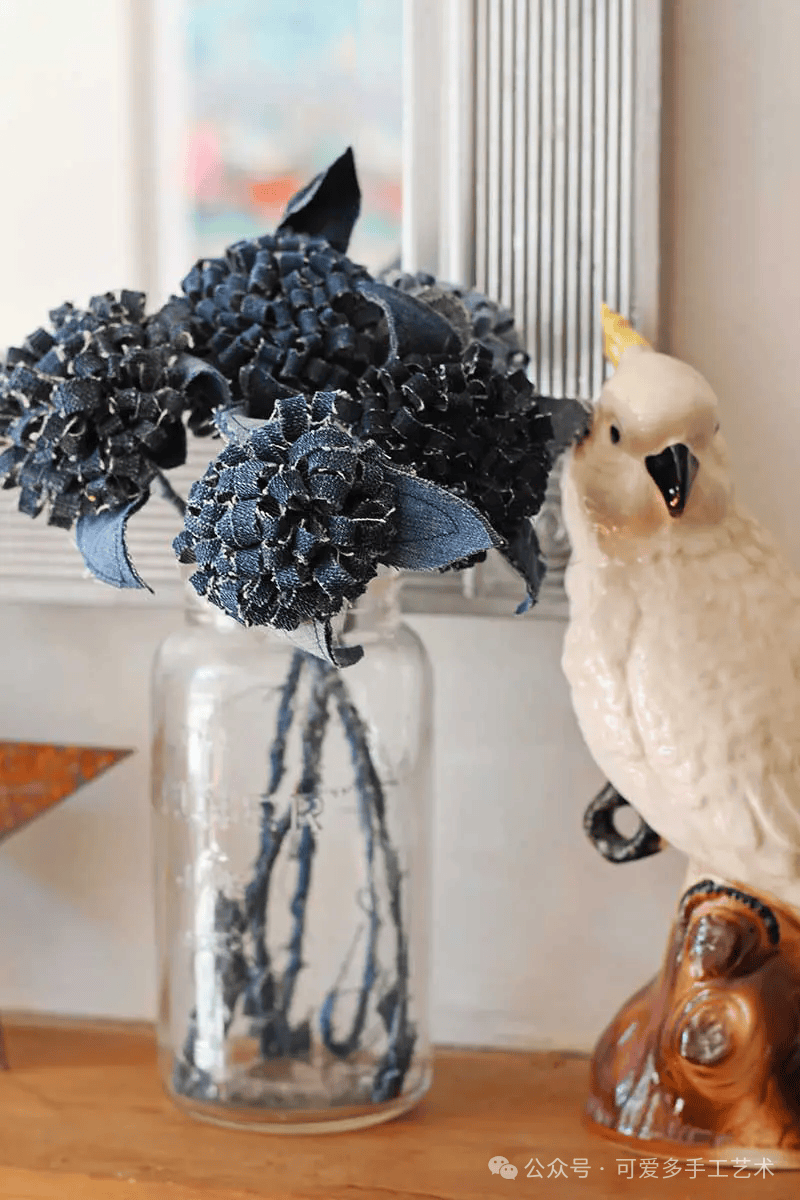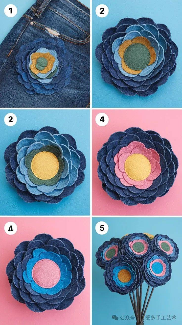 戳视频学习旧牛仔裤制作卷心玫瑰的教程