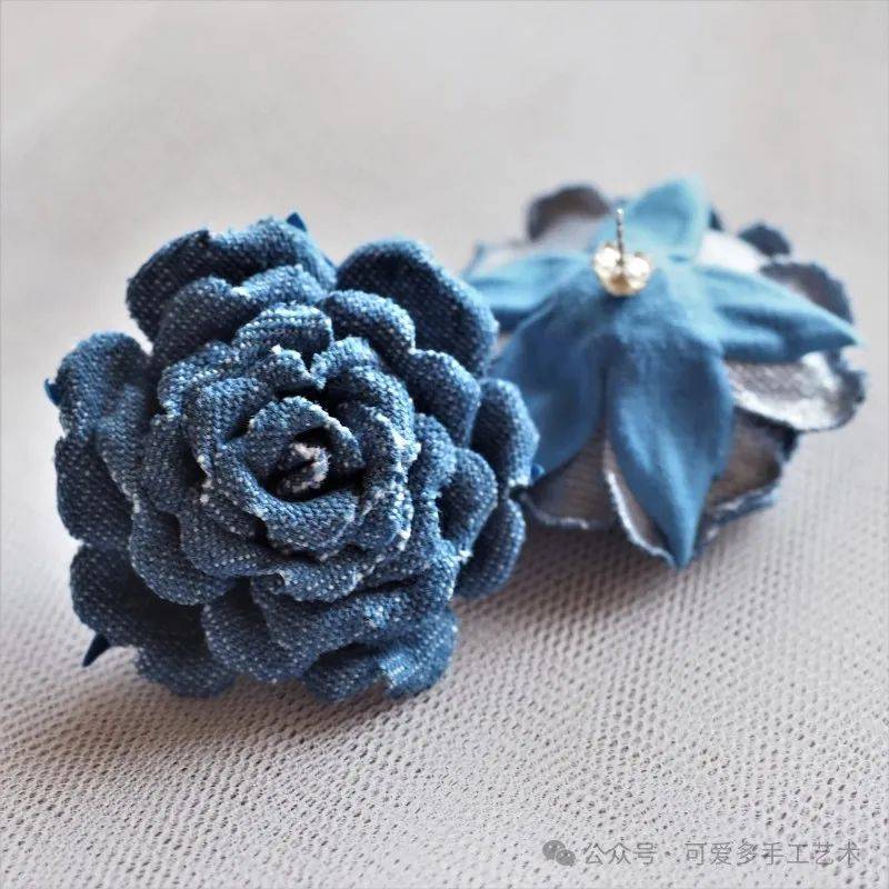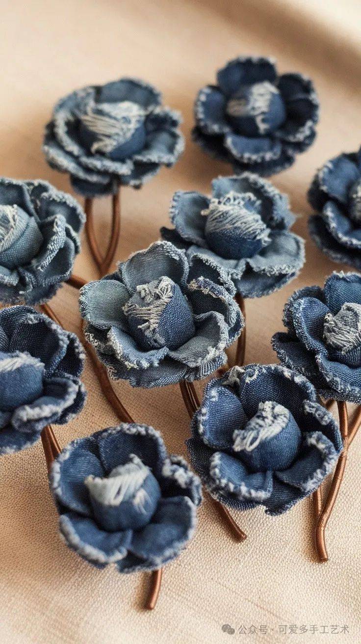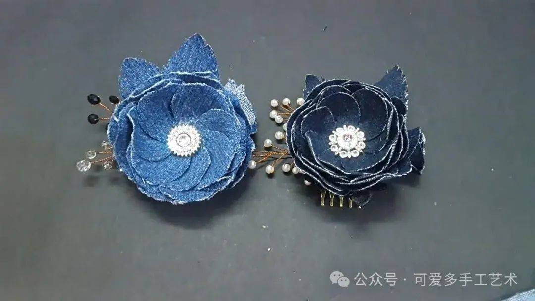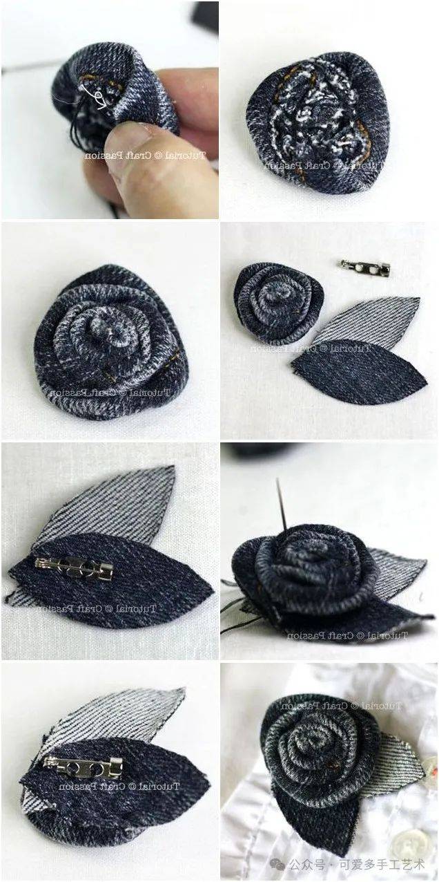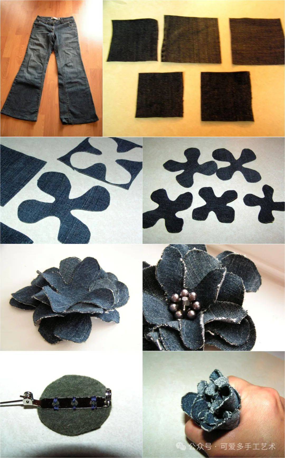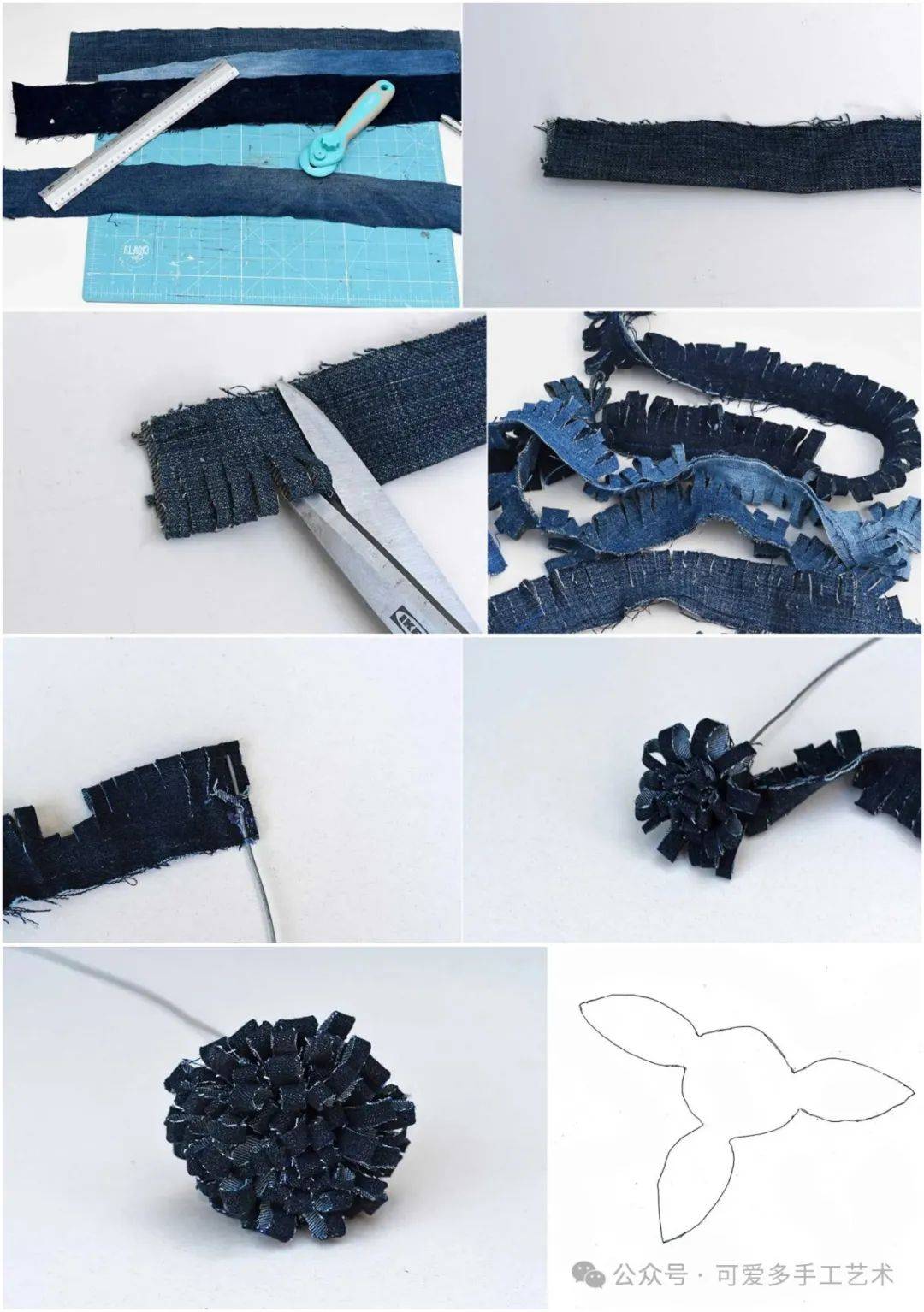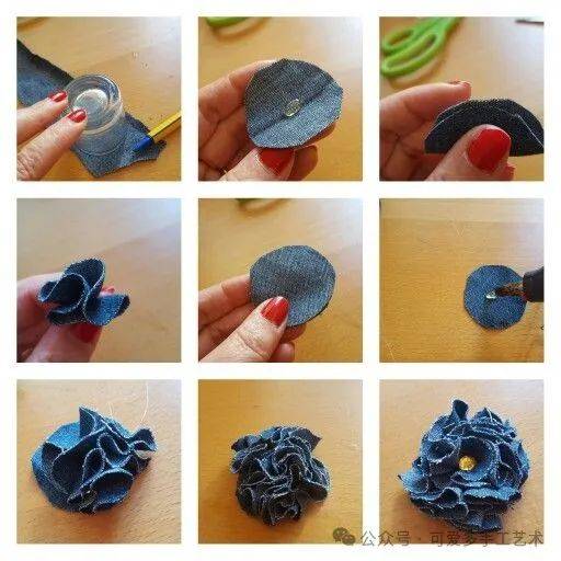 戳视频学习旧牛仔裤制作玫瑰发饰的教程