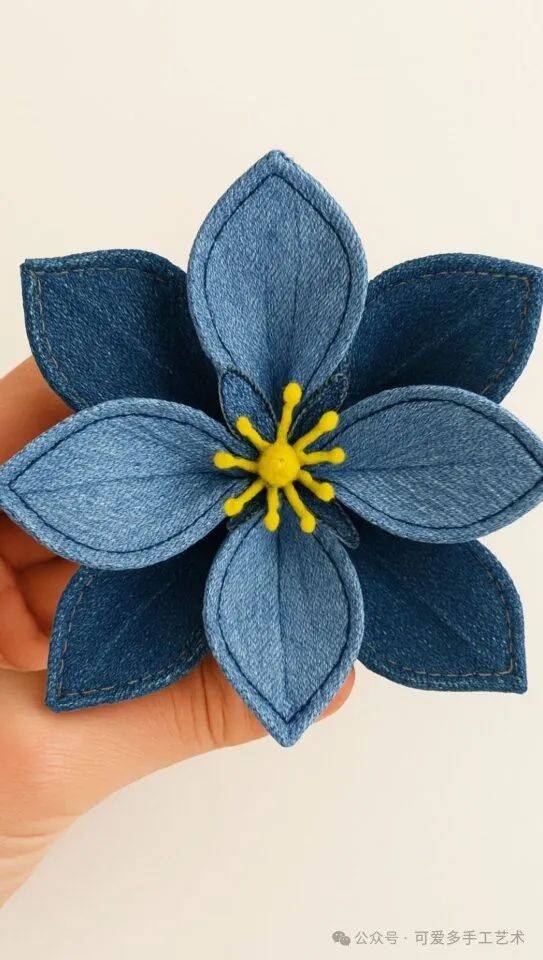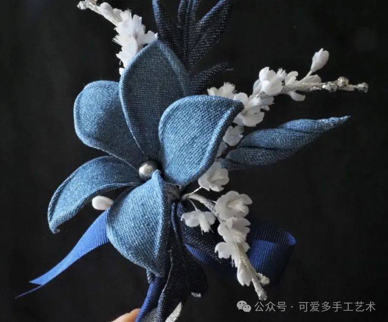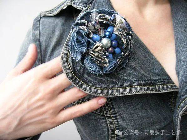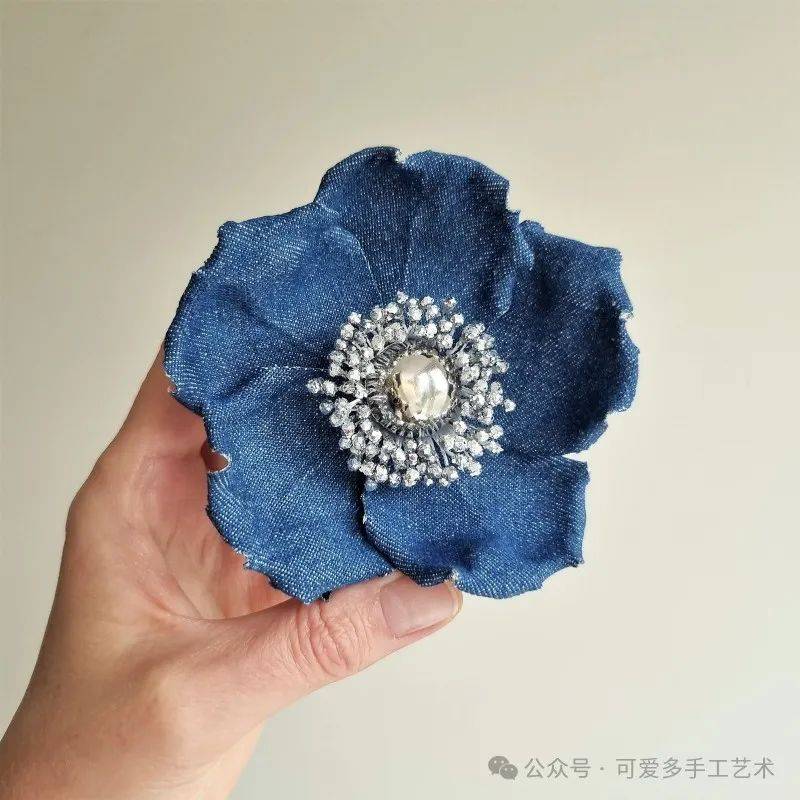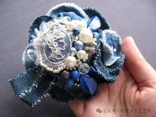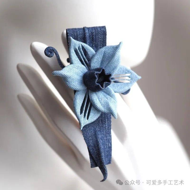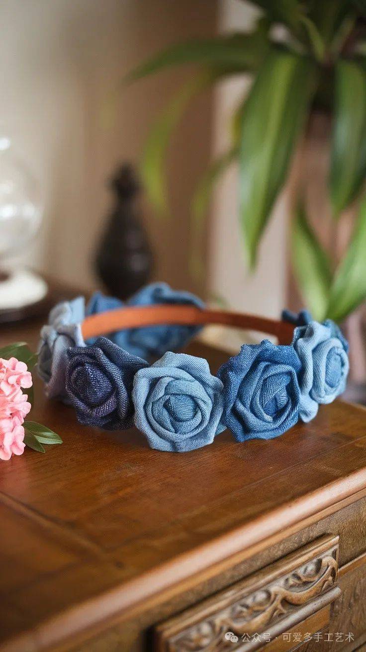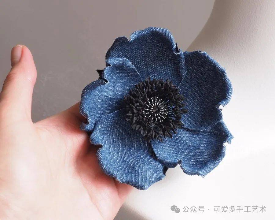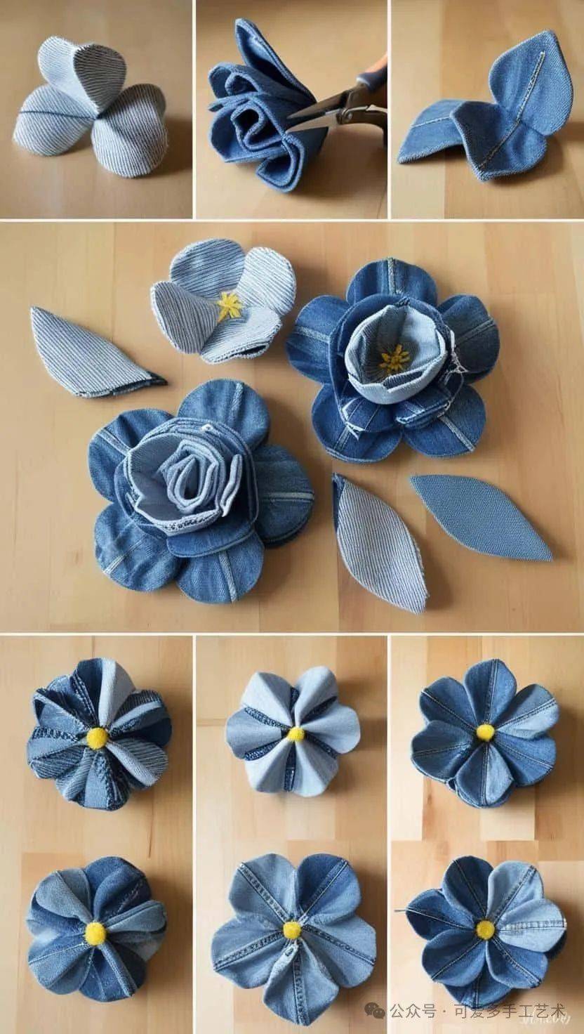 戳视频学习旧牛仔裤制作玫瑰发饰的教程