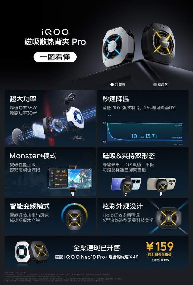 iQOO磁吸散热背夹Pro以其强大的散热能力和智能变频设计,轻松激活iQOO手机和平板的Monster+模式,为用户带来了更为极致的性能体验。而iQOO 33W自带线充电宝则以其便携性、高效充电速度和广泛的兼容性,成为了用户出门在外的必备之选。