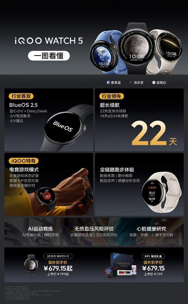 iQOO WATCH 5 搭载了蓝河操作系统,实现了系统级AI能力,为用户提供了贴心的AI小助理。同时,它还支持电竞游戏模式、专业健康监测以及超长续航等功能,成为用户日常生活的得力助手。而iQOO TWS Air3则以其全链路44ms游戏低延迟、出色的音质和蓝牙6.0多设备双连接等功能,成为了手机用户的理想拍档。