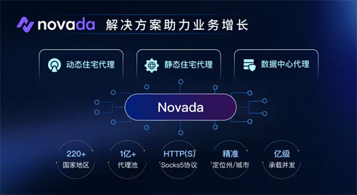 从动态/静态住宅代理到独享数据中心代理,从长效ISP代理到动态数据中心等解决方案,Novada将带来覆盖全球220+国家地区的住宅IP代理服务,助力企业出海与数据采集瓶颈。