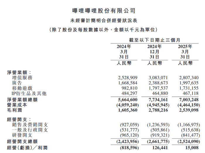 北京时间5月20日,B站发布了2025年第一季度未经审计的财务业绩。2025年第一季度,B站总营收达70.03亿元,同比增长24%,在上一季度基础上增速加快;非美国通用会计准则(Non-GAAP)下,经调整净利润为3.62亿元,上年同期净亏损为4.56亿元。