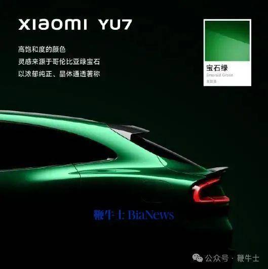 13、太貌美了!小米发布YU7全新配色:宝石绿
