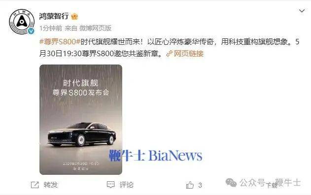 3、尊界S800发布会定档5月30日