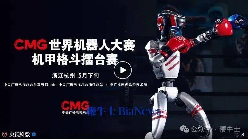 据央视科教消息,《CMG世界机器人大赛·系列赛》机甲格斗擂台赛将于5月25日在杭州举行。宇树科技将以合作方身份参加比赛。
