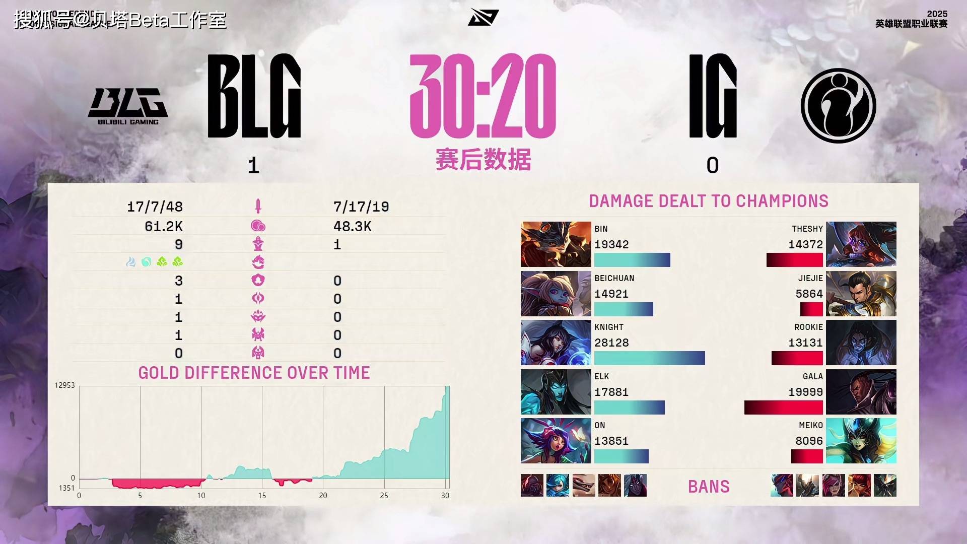 LPL登峰组第二轮IG和BLG的BO3,双方大战3局之后,BLG以2-1的战绩击败IG,拿下第12胜!