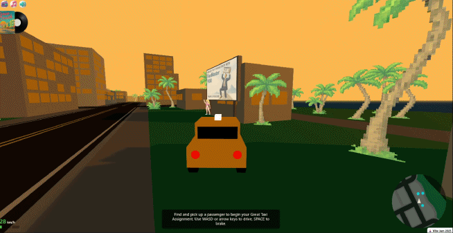 除了 coding 有氛围,游戏场景的氛围感也直接拉满。这种沉浸感,就好像你正在黄昏日落的海边小镇,车上放着动感的爵士摇滚乐,油门踩到底,穿梭飞驰在大街小巷。。。