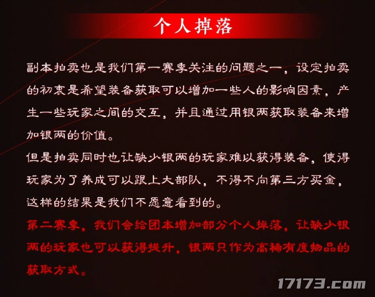 与此同时,第二赛季将会采用团队拾取与个人掉落并行的模式,保证每一位玩家在打完团本都能有提升。PVP也会新增获取装备的方式,且PVP装备会跟PVE装备进行区分,避免玩家混搭的情况出现。