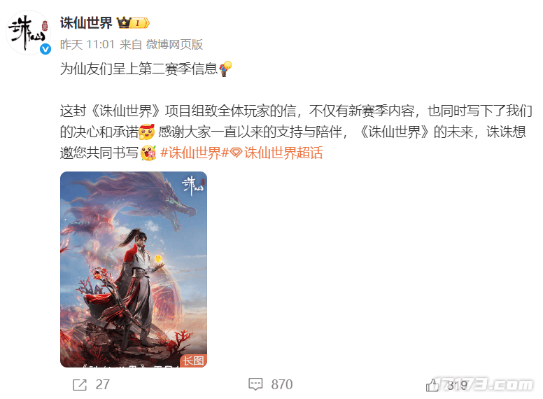 长草期还有1个多月!《诛仙世界》第二赛季定档7月上旬