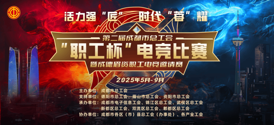 对抗的热血,团战的默契,战术的智慧——这个夏天,电竞激情再度点燃!由成都市总工会主办的活力强“匠”时代“蓉”耀2025年第二届成都市总工会“职工杯”电竞比赛震撼来袭,诚邀每一位热爱电竞的职工加入这场高燃对决,释放属于你的电竞光芒!