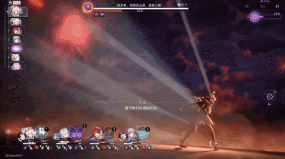 跌宕起伏的战斗中,配合了BGM《拂晓》,整个战斗的动画演出与抑扬顿挫的音乐编排巧妙地融为一体,带来了一场酣畅淋漓的谢幕演出。而在黑暗中两度带来光明的风堇,也在这场精彩的战斗中,有了不同于“医者”身份的英雄底色。
