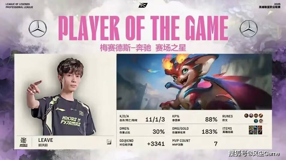 最终的胜者是FPX,虽然打进季后赛了,但过程也挺吃力的,NIP每输一局,第二把都能把比分扳平,Leave在这场比赛里,是真可以用燃尽来形容,NIP的赢的局,基本上都是他一个人在C,第二局的小火龙,团战每波都能保证自己不阵亡,并且完成收割,20分钟就把被动叠满属实夸张。
