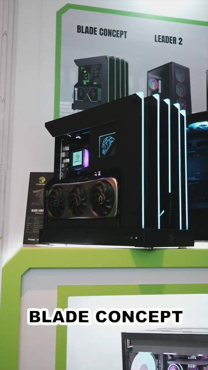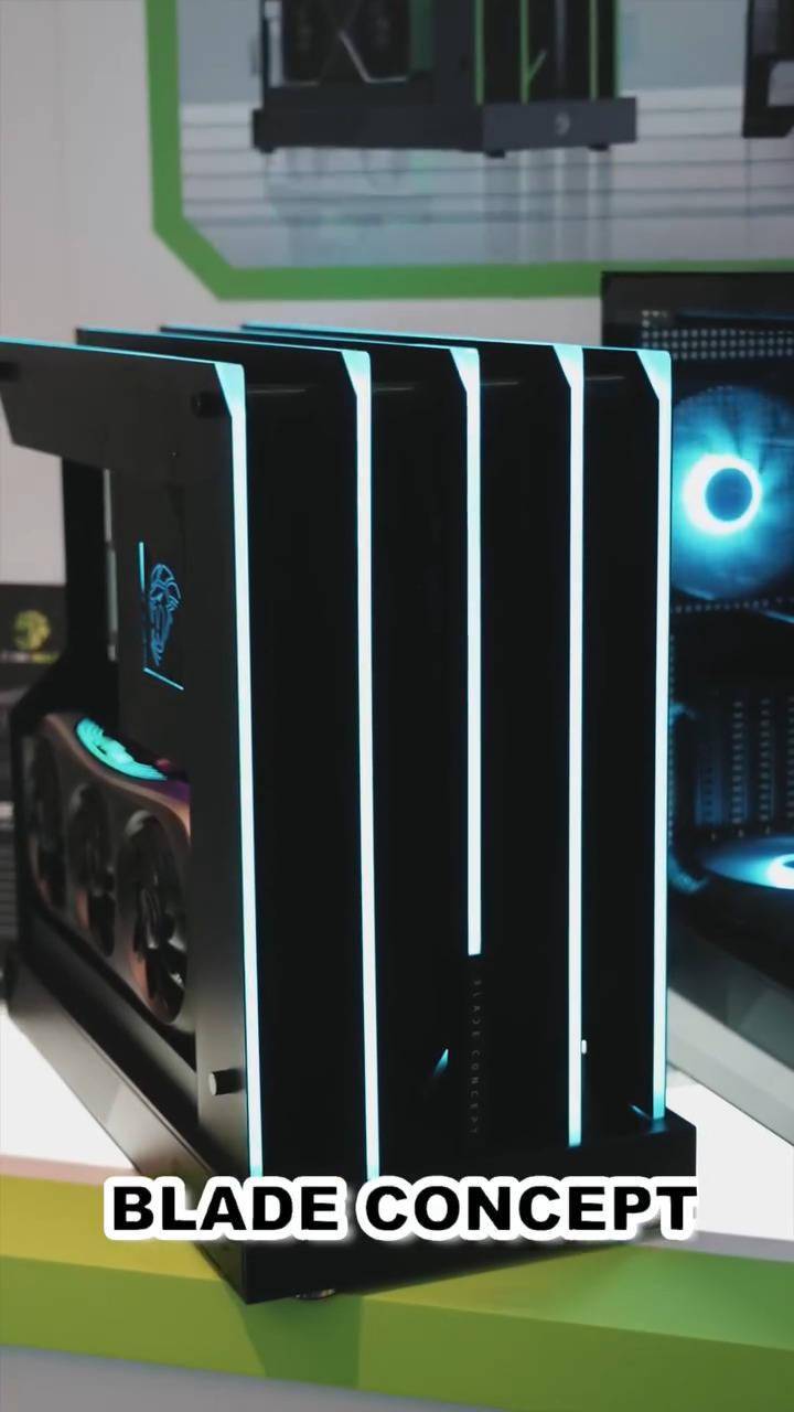 游戏帝国此次还展出了上下物理分仓、左侧配备矩阵灯显屏幕的 N90 ARGB 机箱和 BLADE CONCEPT 开放式机箱实物样品。