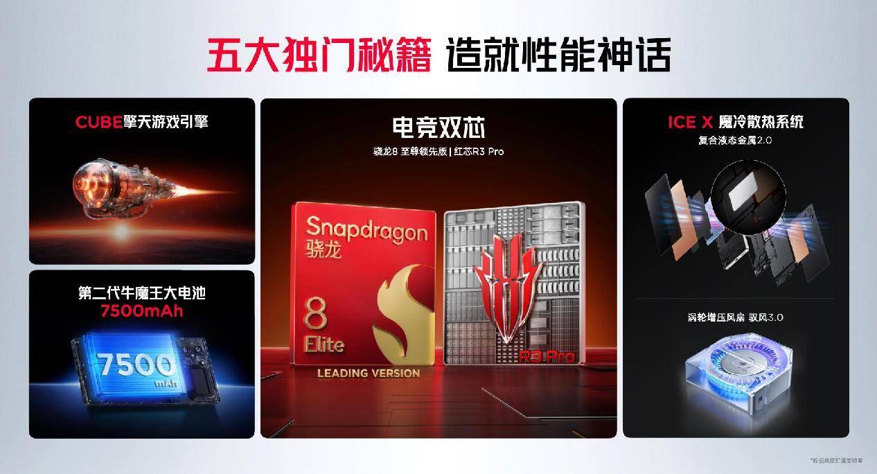 2025年5月26日,红魔带来全新电竞旗舰力作——红魔10S Pro系列游戏手机。以“超频·超能”为核心定位,搭载性能更强的骁龙8至尊超频版芯片、7500mAh第二代牛魔王大电池、120W快充,液态金属2.0+风冷散热双散系统等新技术,将用户体验推向新维度。作为全球专业电竞装备品牌,红魔始终践行“为玩家打造极致游戏体验”理念,持续引领行业创新。
