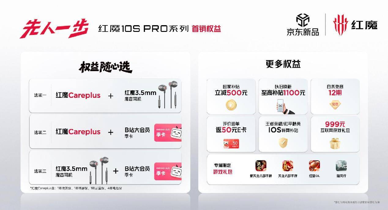 5月26日,红魔10S Pro系列在京东开启全球首发!现推出全球独家“先人一步新品尝鲜购”活动,上京东搜索红魔10S Pro,即可抢先体验新机。不仅如此,红魔10S Pro系列还带来了多重惊喜权益:首销用户下单即享权益随心三选一、至高享白条12期分期,以旧换新至高补贴1100元。此外,购买红魔10S Pro系列,还能解锁游戏世界福利,《新天龙八部手游》、《天龙八部手游》、《踏风行》、《红警OL》等热门游戏的精美道具免费送,助你畅玩无阻!
