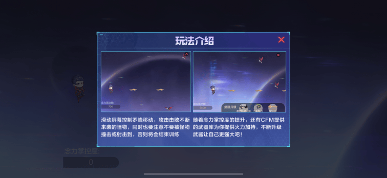 进入游戏后,你将操控罗峰进行训练,罗峰会使用遁天梭来攻击虫族怪物,当然你也需要当心躲避虫族怪物的攻击。一旦不小心被击中,那么念力训练将立即结束。训练中获取念力掌控度有两种途径:不断向前飞行和击败怪物,所以你需要一边躲避怪物攻击使罗峰可飞行更远的距离,看看自己的极限在哪里。