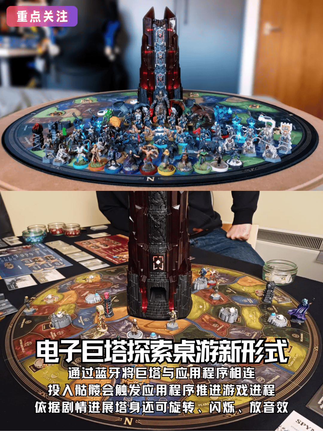 核心机制脱胎于《瘟疫危机》的危机管理模式:玩家回合结束后向塔内投放骷髅标记,伴随APP实时演算,腐化骷髅将随机坠落在四大国度触发灾难。