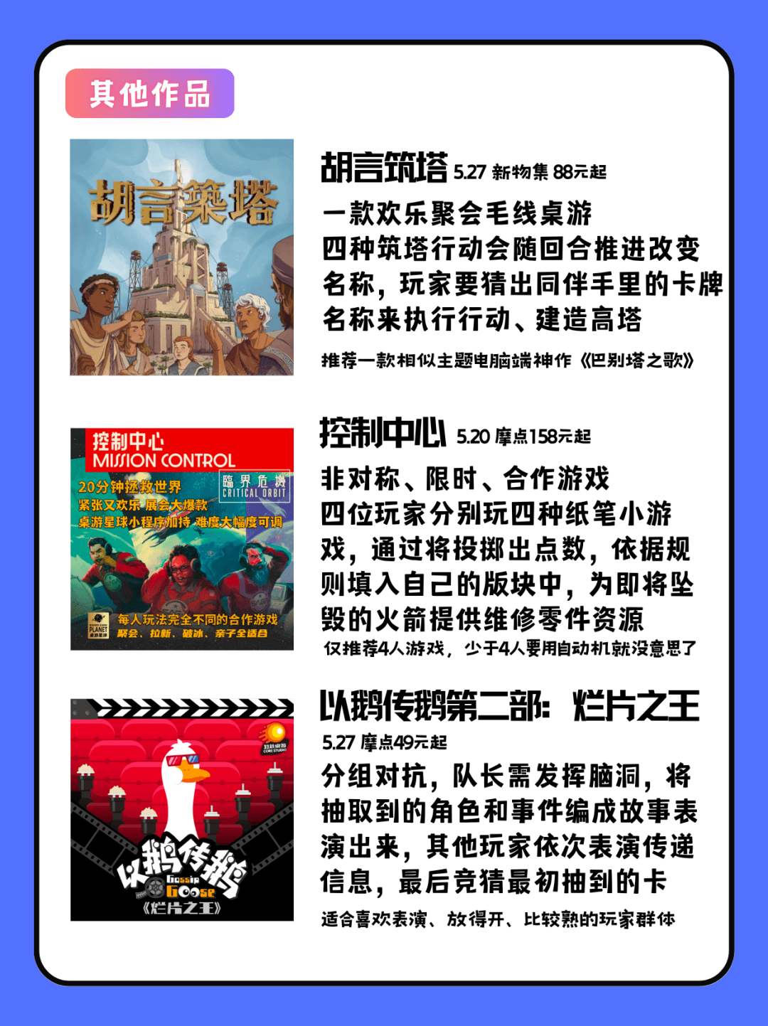 大家好我是航仔。这是一档本账号新开的栏目,以下图文全部来自小红书博主“桌游调查局”,我觉得这位博主的资讯栏目非常不错,所以就授权在这里发布,如果大家喜欢,这档栏目会长期以半个月为周期延续,也希望大家多多点赞以及去到小红书上支持“桌游调查局”。