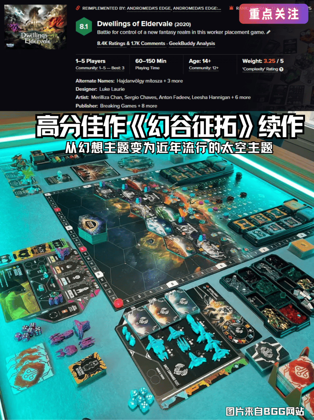 20年佳作《幻谷征拓》的太空主题升级版,是一款中策偏一点点重的德式桌游。