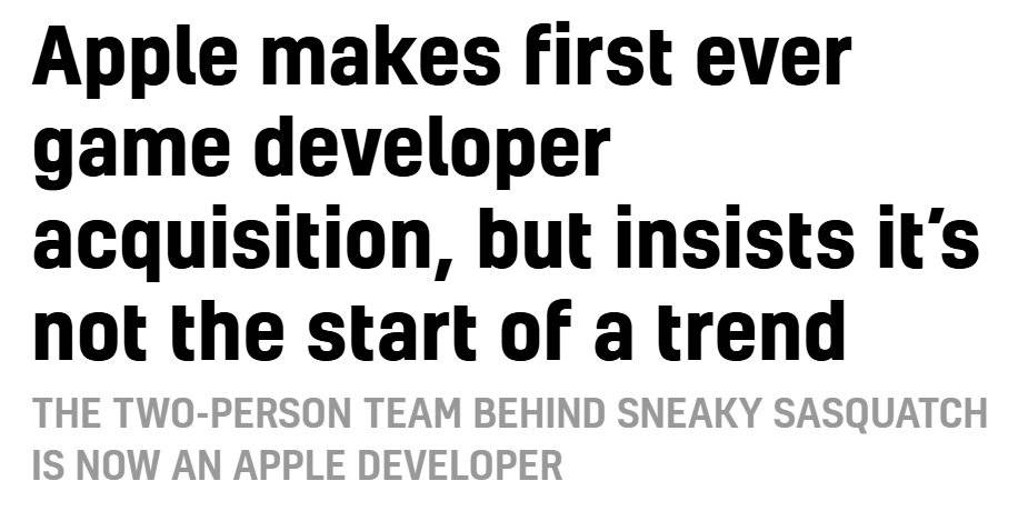 苹果发言人称:“我们将继续为 Apple Arcade 玩家提供出色的游戏体验,涵盖数百款由全球顶尖开发者打造的作品。”苹果方面称这次收购是一个“特殊情况”,因为公司认为这是一个可以借助 Apple Arcade 订阅服务来帮助这个团队成长的机会,不代表公司将开启全新的游戏战略——苹果仍将继续与第三方开发商合作,为 Arcade 提供更多游戏。