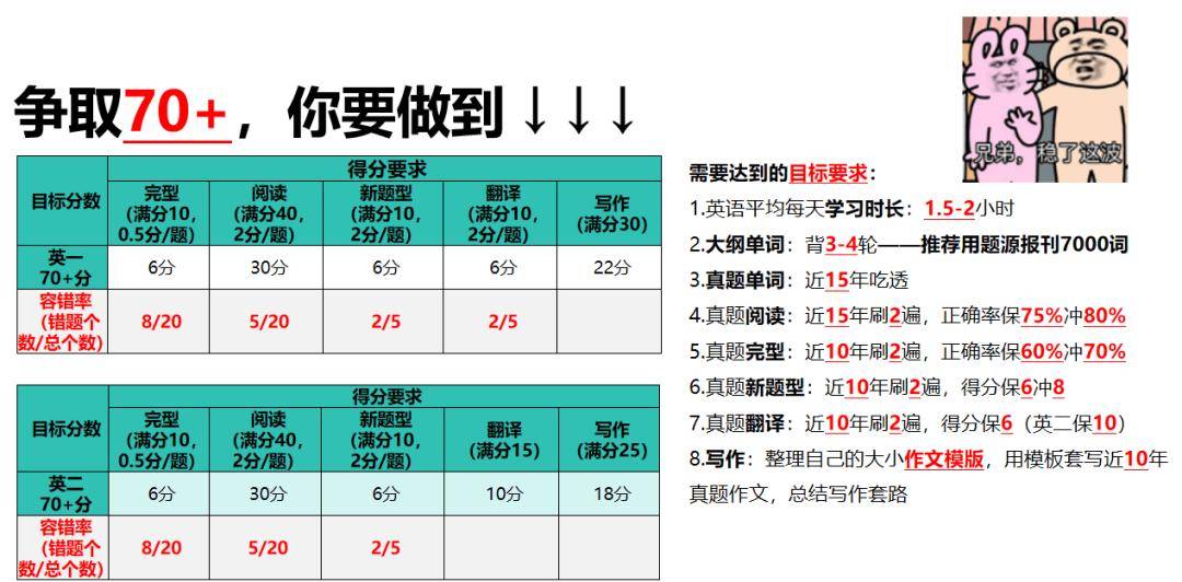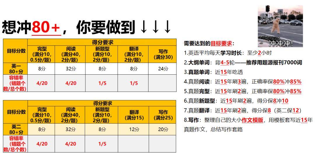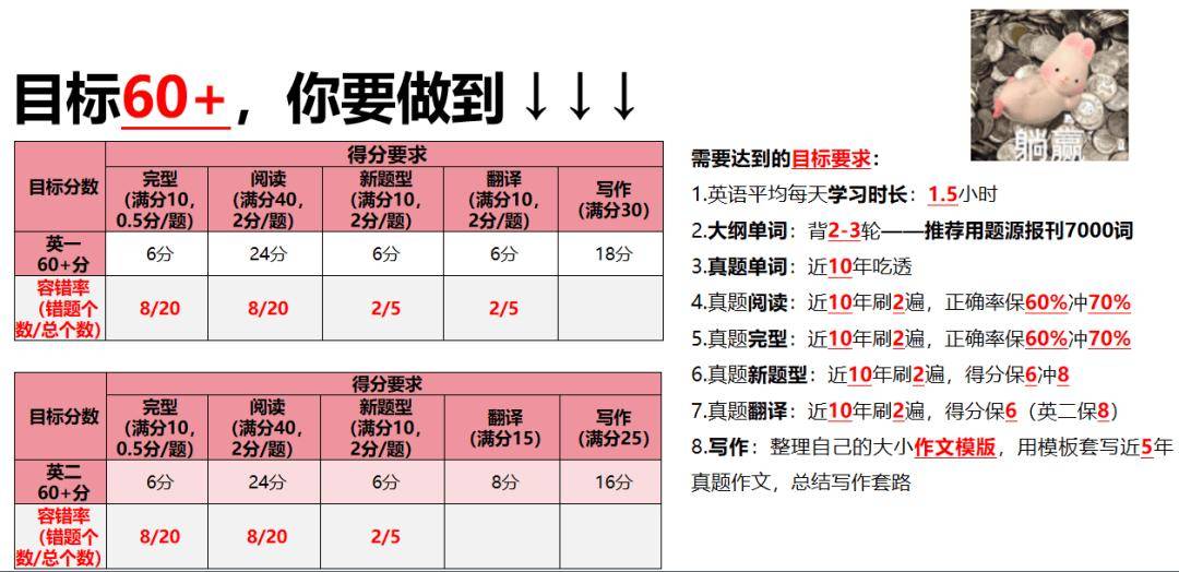 最后,文章比较长,我们还专门给你们总结了不同分数目标你要做到的目标和要求: