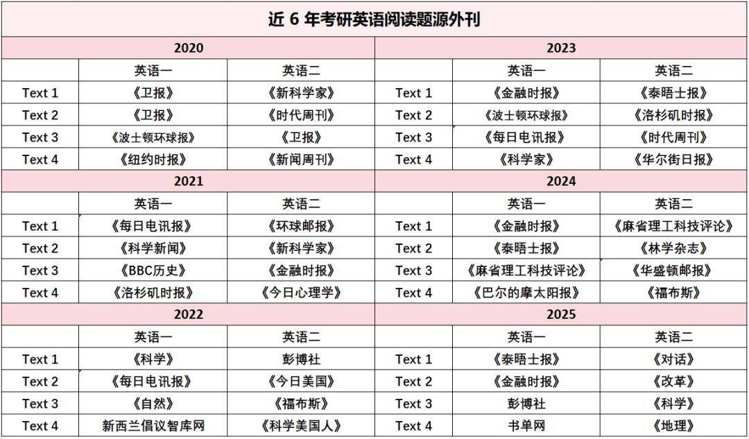 考研英语近6年真题阅读题源外刊范围