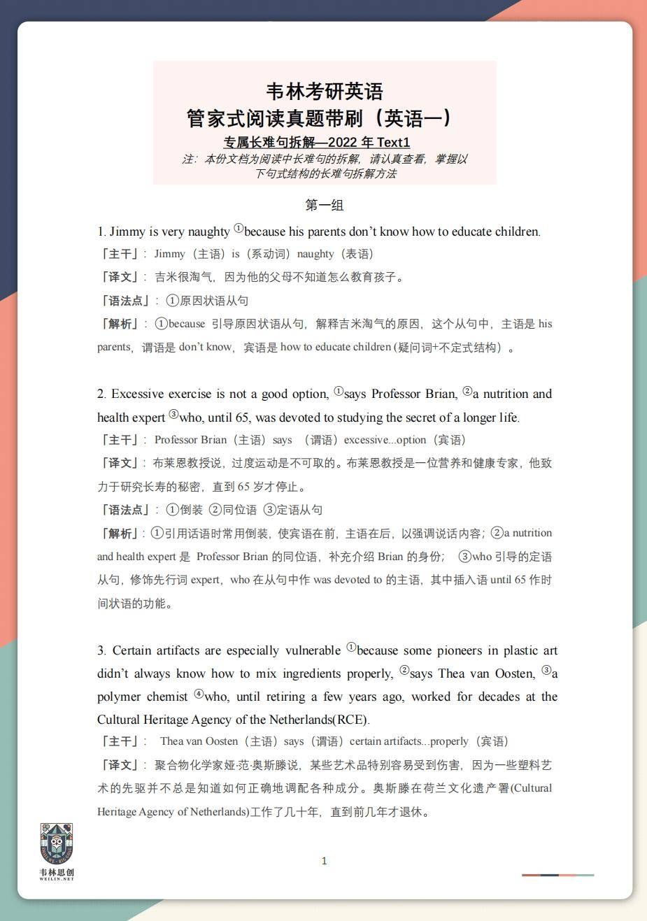 3. 长难句:可以继续保持每天练习真题阅读长难句,训练语法的同时积累语料库
