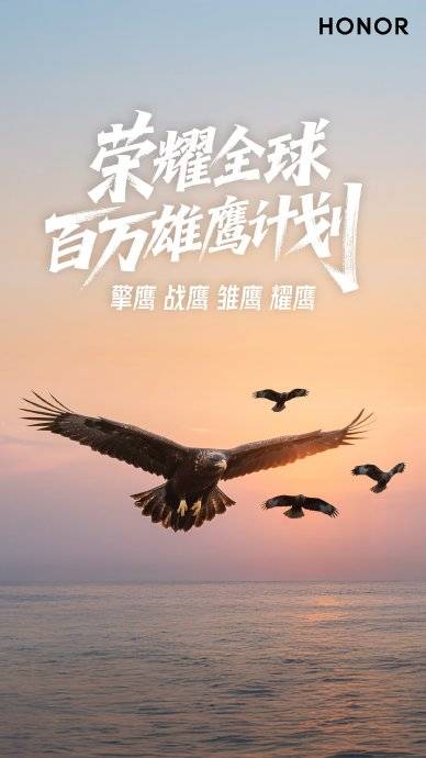 #荣耀李健国内首秀官宣百万雄鹰计划# 5月28日,#荣耀400#系列新品发布,荣耀CEO李健官宣"全球百万雄鹰计划",并发布首条个人微博。该计划面向全球招募10位技术领军人才、100名销售精英、1000名优秀毕业生及10000名荣耀用户体验官,并分别将其命名为“擎鹰”、“战鹰”、“雏鹰”、“耀鹰”。