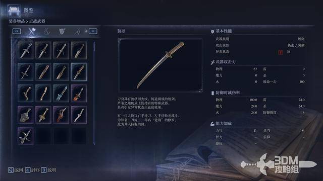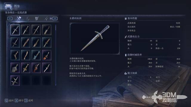 《艾尔登法环:黑夜君临》中的武器种类是非常多的,有的很好用,有的是纯整活,比如女爵的短剑,是女爵职业自带的武器,不过这个武器的攻击距离太短了,属于是敏捷类武器,刚开始用用还可以。