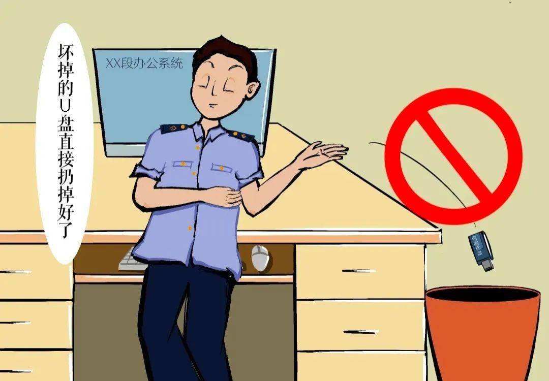 🔺常见错误情形:一是故障电脑擅自找外部单位维修处理;二是报废和闲置的电脑、U盘等随意丢弃。